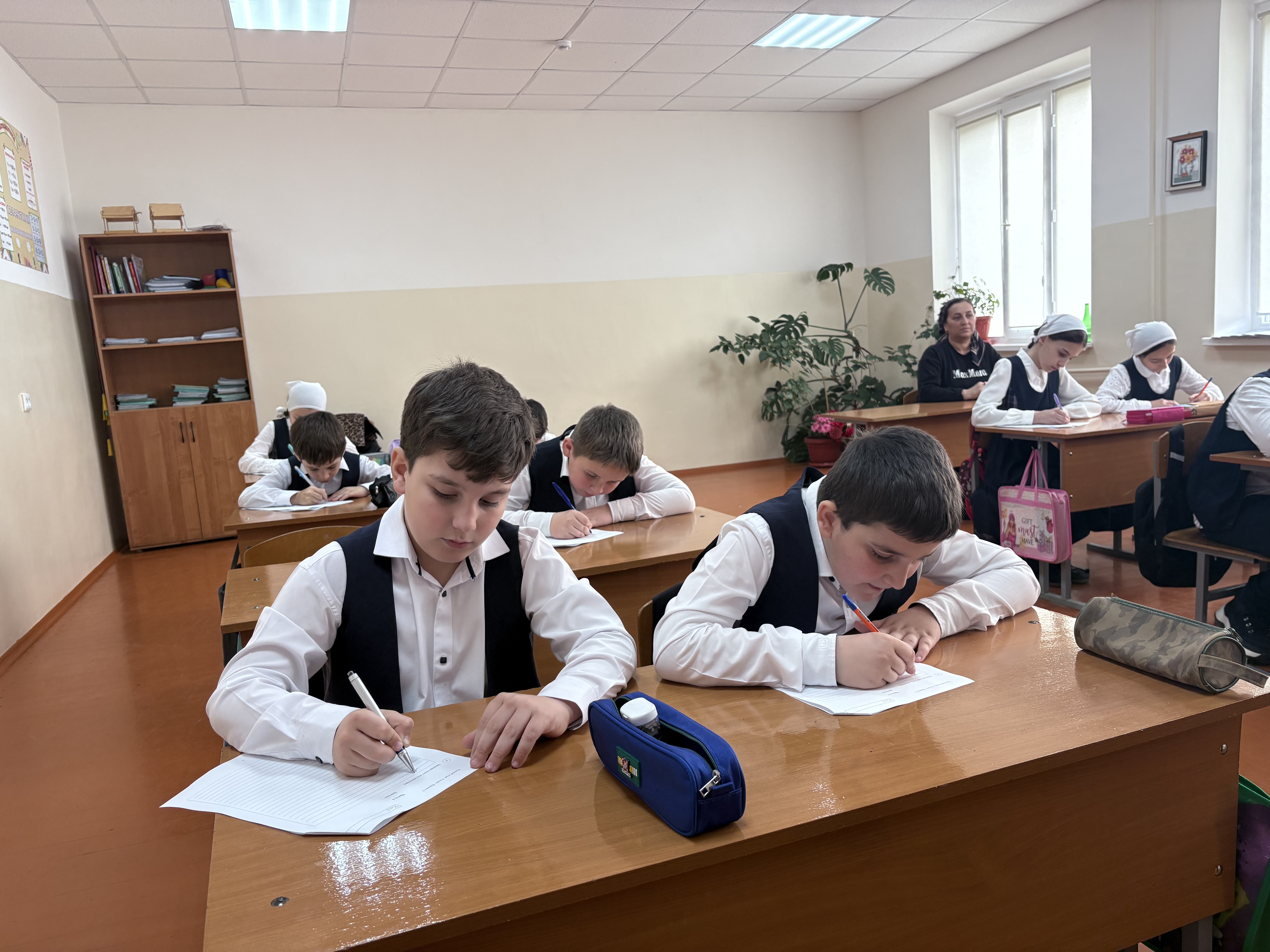 04.12.20254 декабря 2025 года в МБОУ «СОШ с.Памятой» провели контрольную работу (диктант) с учащимися 4 класса. Наблюдателем во время проведения контрольной работы была региональный методист Тайсумова Луиза.