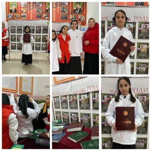 Советник директора по воспитанию Туркаева З.И. совместно с активистами первичного отделения «Движения Первых» организовали выставку «Герои моей малой Родины», посвящённую Дню Героев Отечества.